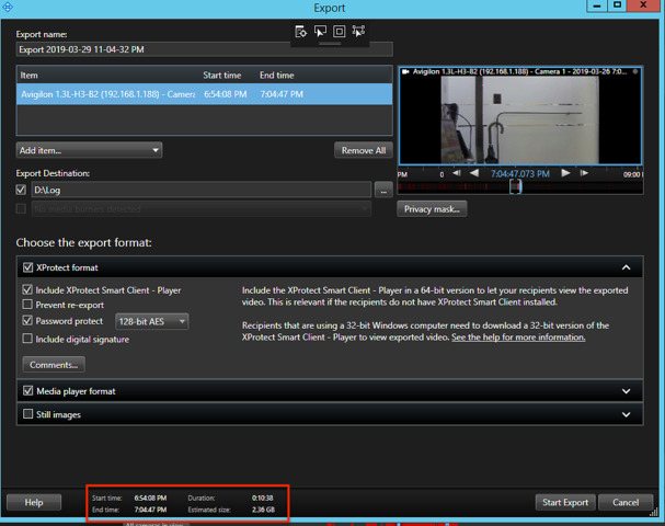 We found that there have an Estimated Size indicator before export file in MIlestone 2019R1.