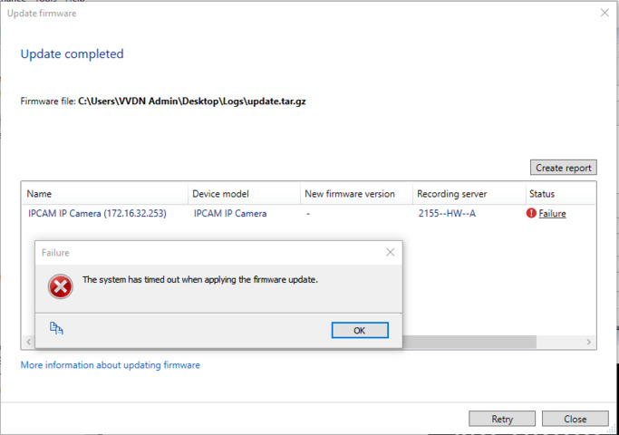 I have uploaded the capture_packets.zip file for above both case along with milestone backend ONVIF logs. How we can ensure device firmware upgrade successfully in case of large firmware file. ?