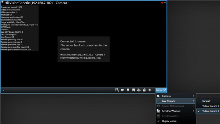 Are you certain that the additional streams are actually coming through to the Recording Server? It’s possible the primary stream is setup for TCP or HTTP streaming but the other streams are still on UDP and being blocked by Windows Firewall, so the “server has lost connection to the camera” is a legitimate error that would more accurately be written as “the server is not receiving the stream”.
