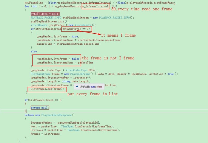 I know the frame rate (value is 25) and GOP (50 frame) of the bitstream, so I read one GOP at a time and put the 50 frame in List ListFrames.