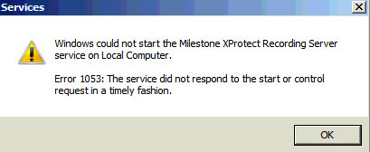I’m running the free version of Milestone Xprotect 2017 R2. No idea why the recording server will not start. I’ve tried starting it from Milestone and in windows services..both fail.
