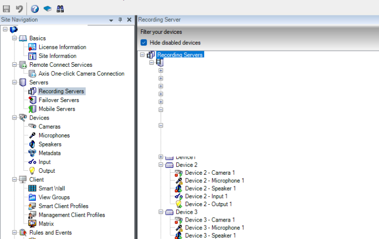 Maybe you don’t see similar output, as your Management Client may have a different setup for those cameras/microphones/speakers. In my example, where I show the output of the getAllViewsAndCameras I have the following setup on my Management Client: