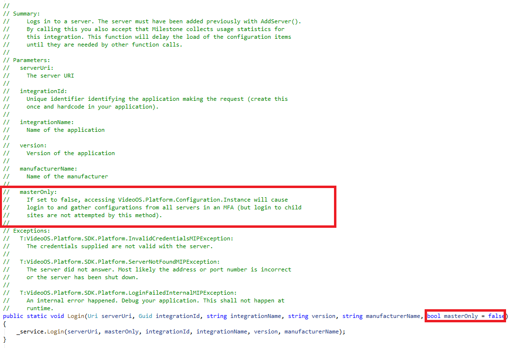 Since we are not using DialogLoginForm in our integration, could you please confirm whether the highlighted masterOnly parameter in the Login method corresponds to the same parameter setting used by DialogLoginForm?
