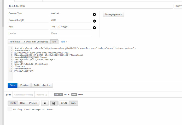 Thank you @Bo Ellegård Andersen (Milestone Systems), that was an issue, The message was successfully delivered.