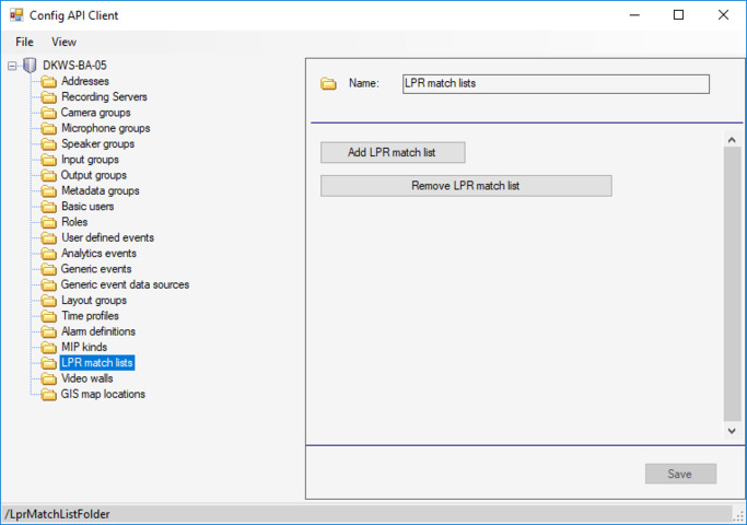 It is now possible to manage LPR match lists in the Milestone XProtect LPR product. Match lists can be created, deleted, read and edited through the Configuration API. Please see the MIP SDK documentation on the Configuration API and the new ConfigurationItems.LprMatchList class for further details.