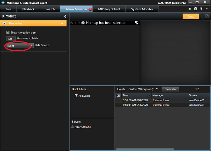 We have only one client for which this happens, on Milestone XProtect 2021 R1. The devices show on the map, and they’ve got alarm circles around the devices which have alarms. The SQL database is on SQL Express and is not oversized, and it seems in the logs we create in the plugin that the alarm is added.