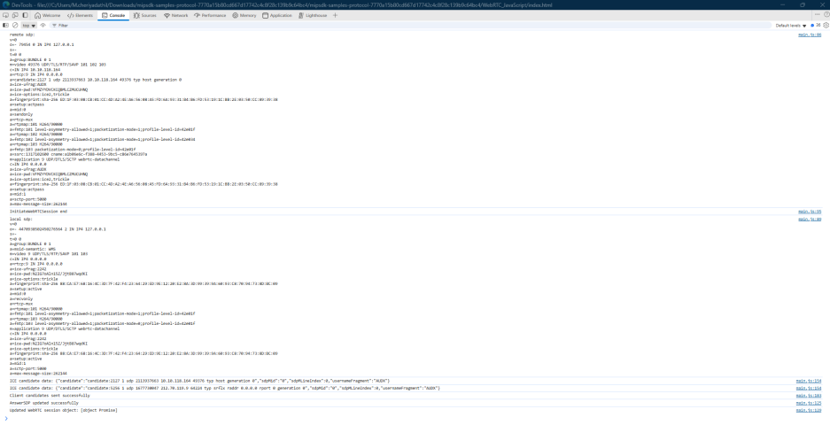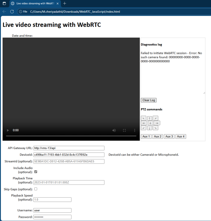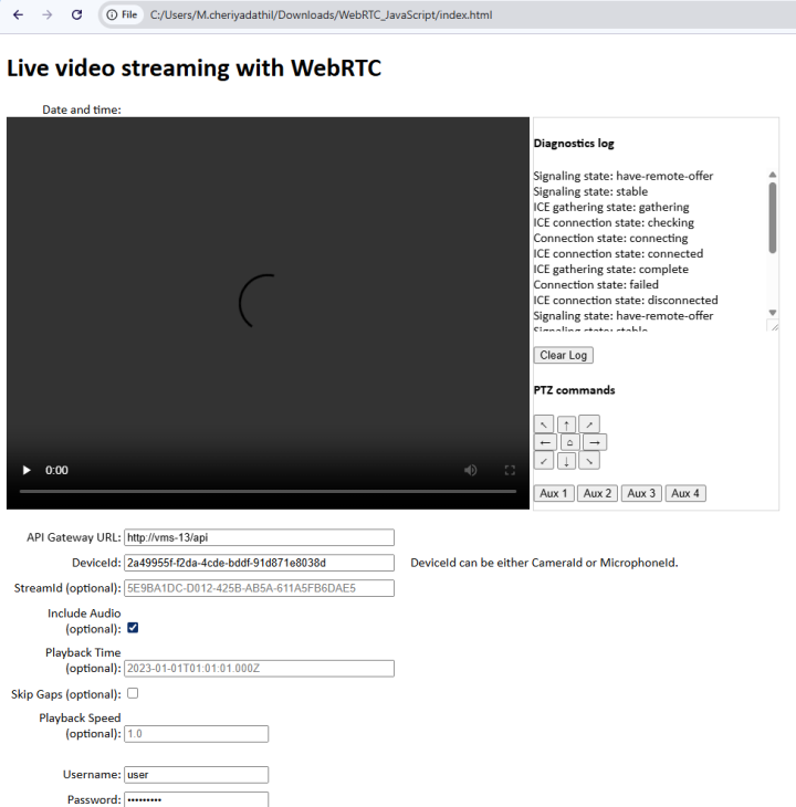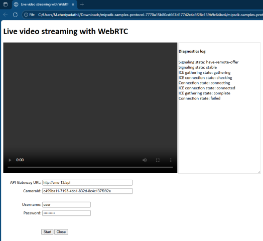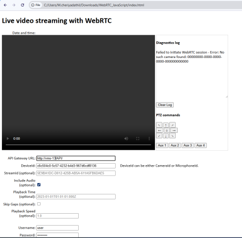 I am trying to use the WebRTC JavaScript Client demo to connect to camera stream through the Milestone API Gateway.