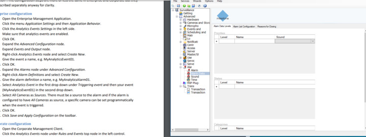 http://download.milestonesys.com/MIPSDK/Samples/TriggerAlarmFromExternal-ConceptSolution.pdf - we tried to set up XML events in the Management Client and Smart Client.