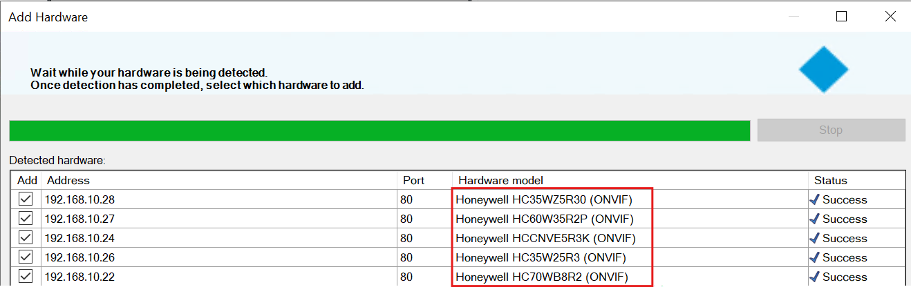 Our camera driver provides ONVIF discovery scheme with regular expression for name and hardware as part of Driver Info supported schemes, but discovered hardware does not show model name in the discovery window.