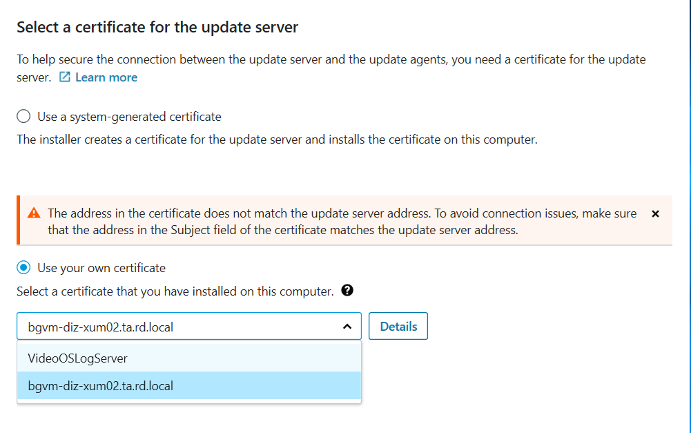 We are aiming to keep certificate management consistent across our Milestone environment, so I just want to confirm whether this behavior is by design or if there is a recommended configuration.