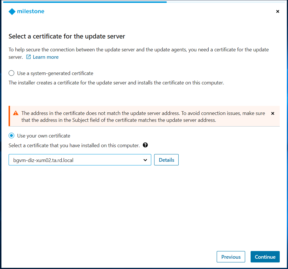 The Agent defaults to self-signed to ensure encryption is active “out of the box” for users without a PKI. However, Milestone built the Update Manager to be flexible for enterprise environments like yours where central trust is a priority.